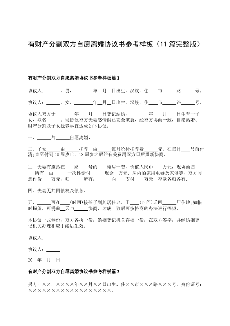 有财产分割双方自愿离婚协议书参考样板篇2