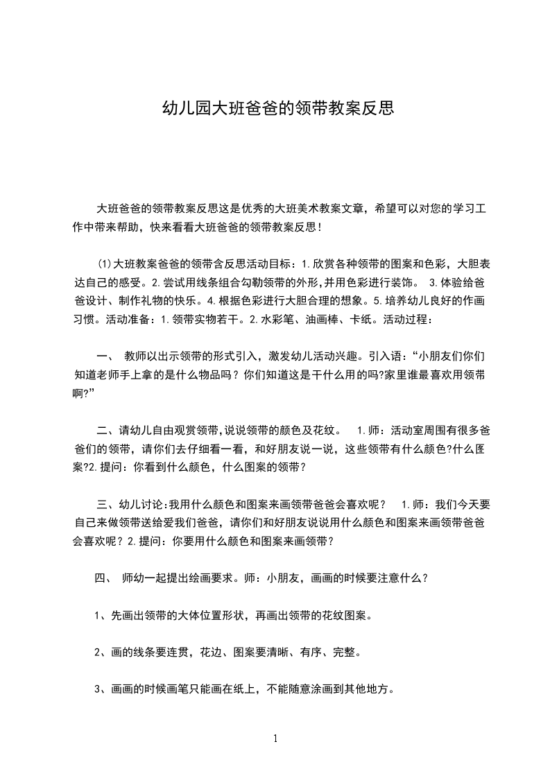 大班爸爸的领带教案反思这是优秀的大班美术教案文章,希望可以对您的学习工作中带来帮助,快来看看大班爸爸的领带教案反思!