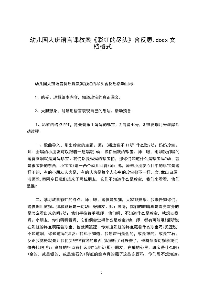 幼儿园大班语言教案彩虹的尽头幼儿园大班语言课教案彩虹的尽头