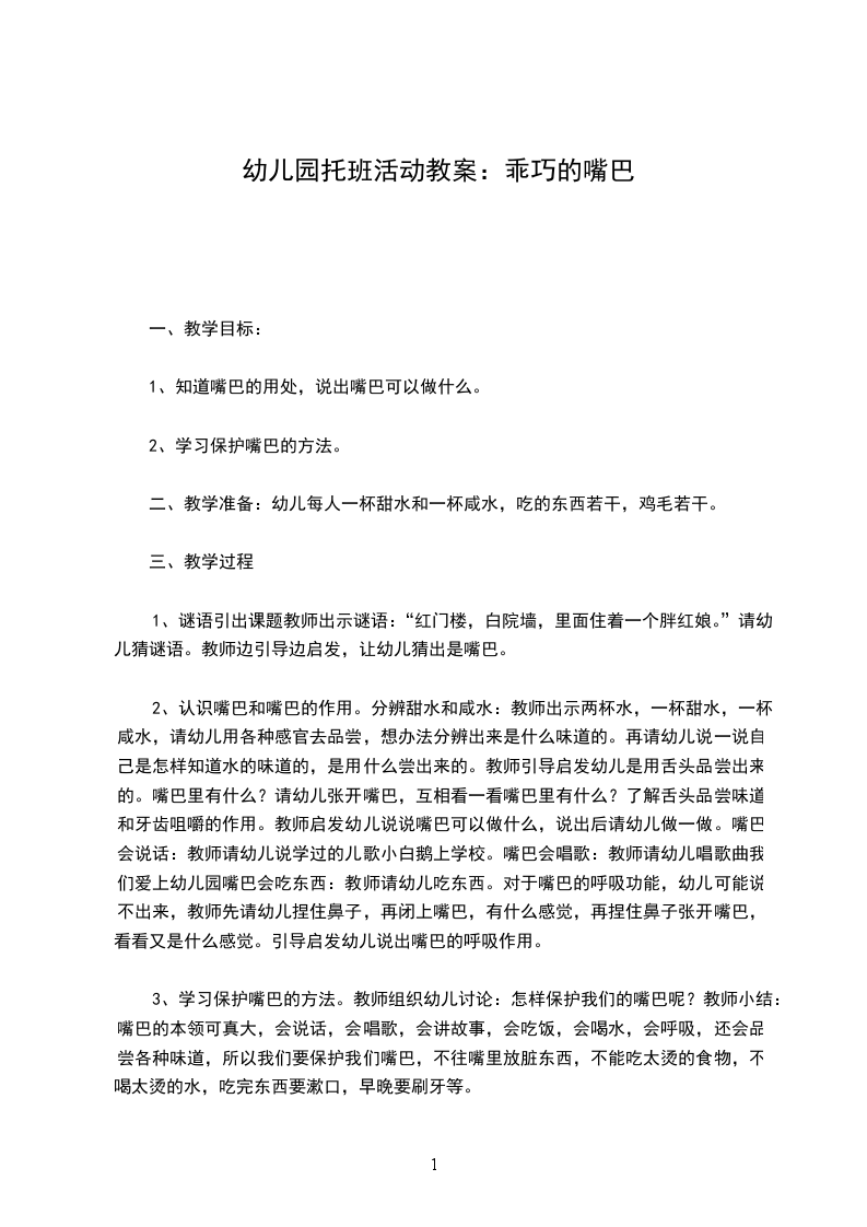 1、知道嘴巴的用处,说出嘴巴可以做什么。