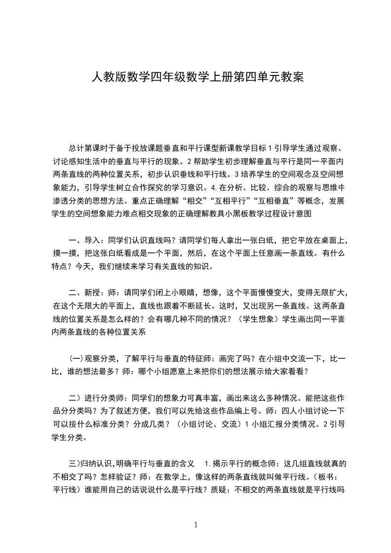 (一)观察分类,了解平行与垂直的特征师:画完了吗?在小组中交流一下,比一比,谁的想法最多?师:哪个小组愿意上来把你们的想法展示给大家看看?