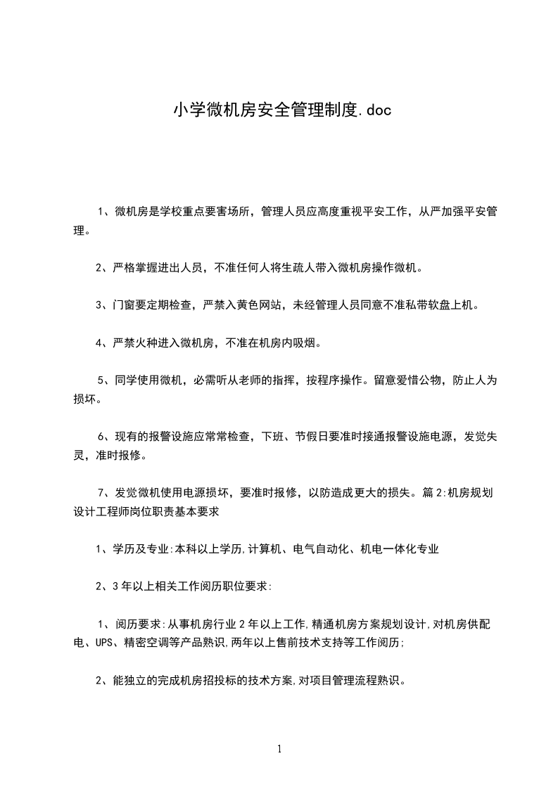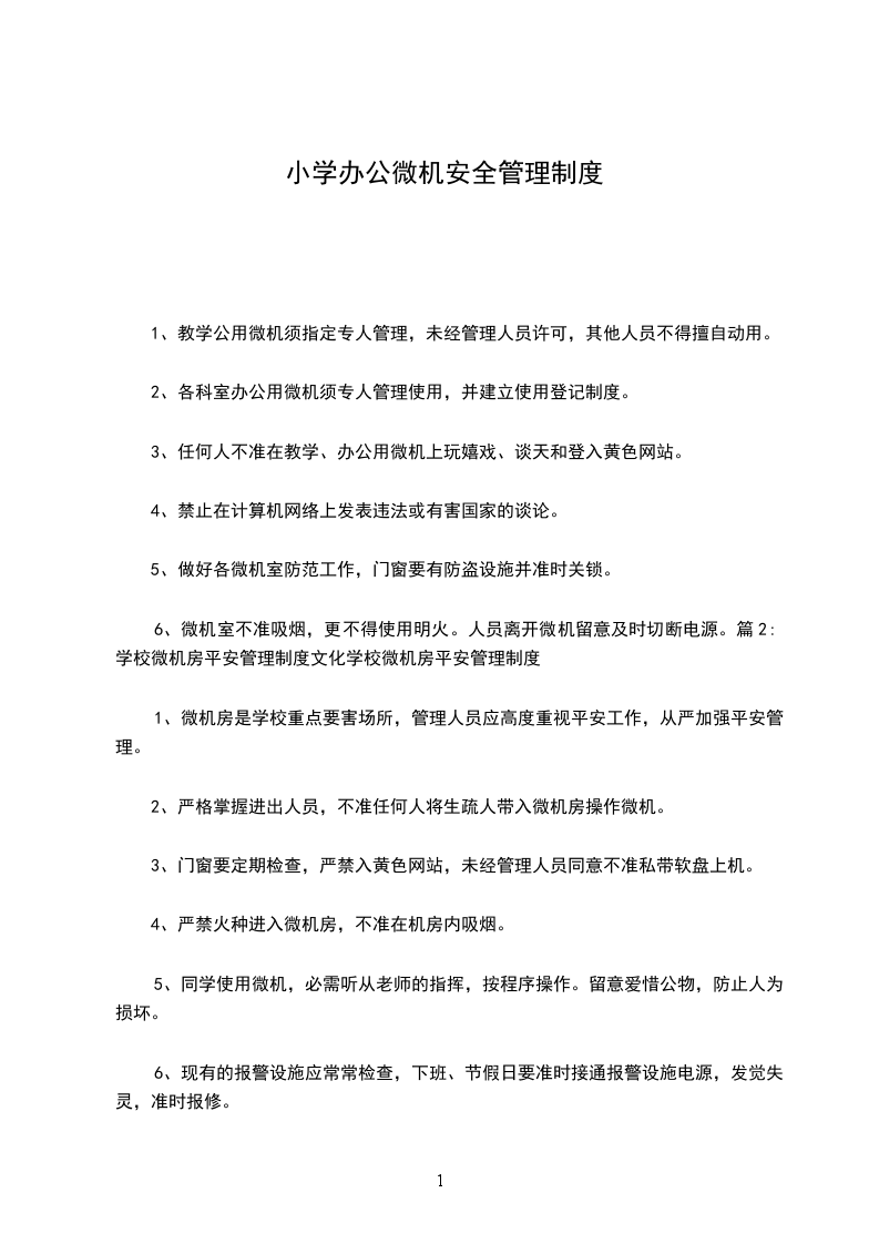 1、微机房是学校重点要害场所,管理人员应高度重视平安工作,从严加强平安管理。