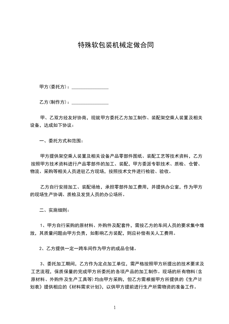 1、甲方自行采购的原材料、外购件及配套件,需按乙方的车间人员的要求集中堆放,其质量问题由甲方负责,如影响乙方装配,则应补偿有关人工费用。