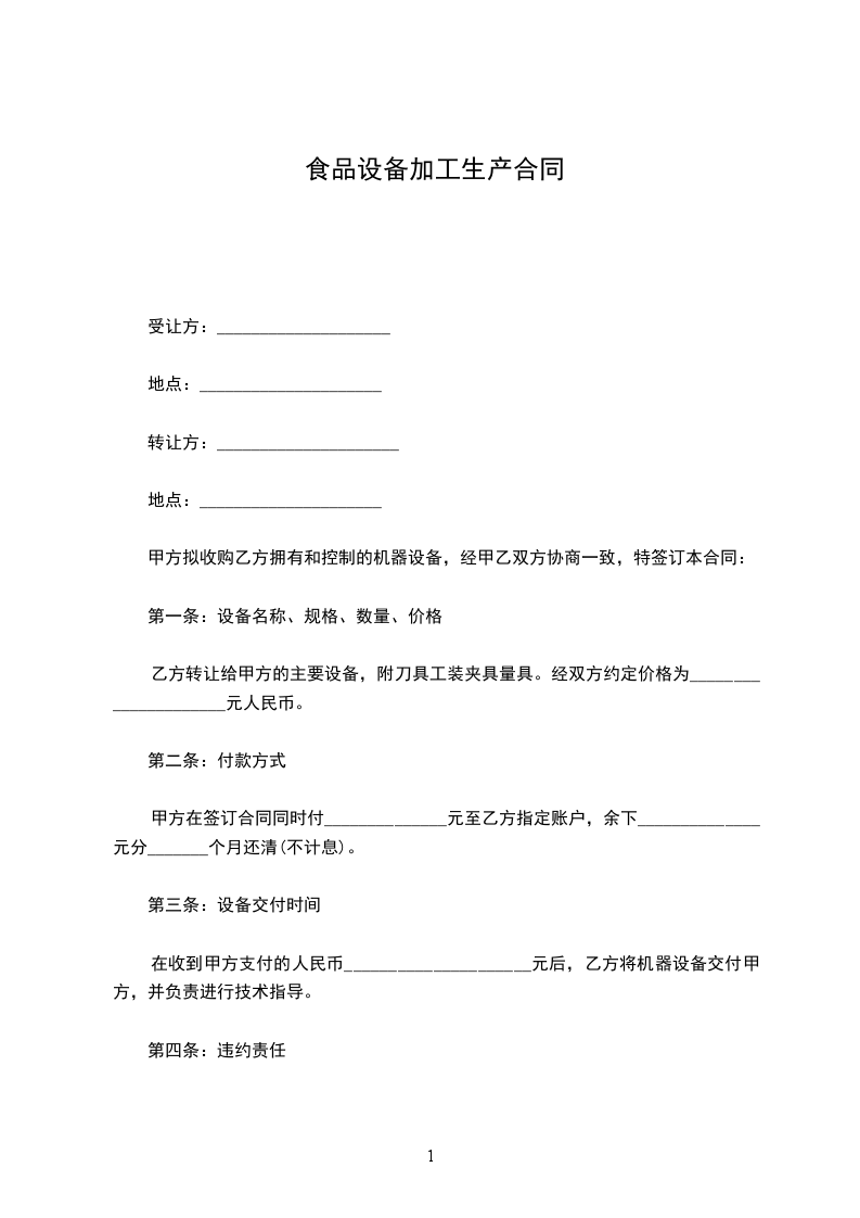 六、乙加工所需要的车床、量具、刀具、夹具、检验设备等其他设备均有乙自己购置,如需甲代制作、代购,乙需按照甲合理提出的价格等金额的支付。甲目前提供的车床从_________月_________日起终止。乙加工所需的原材料有甲提供,乙加工后的副产物(铁屑、铝屑等)由乙作为乙成本计入利润进行核算。