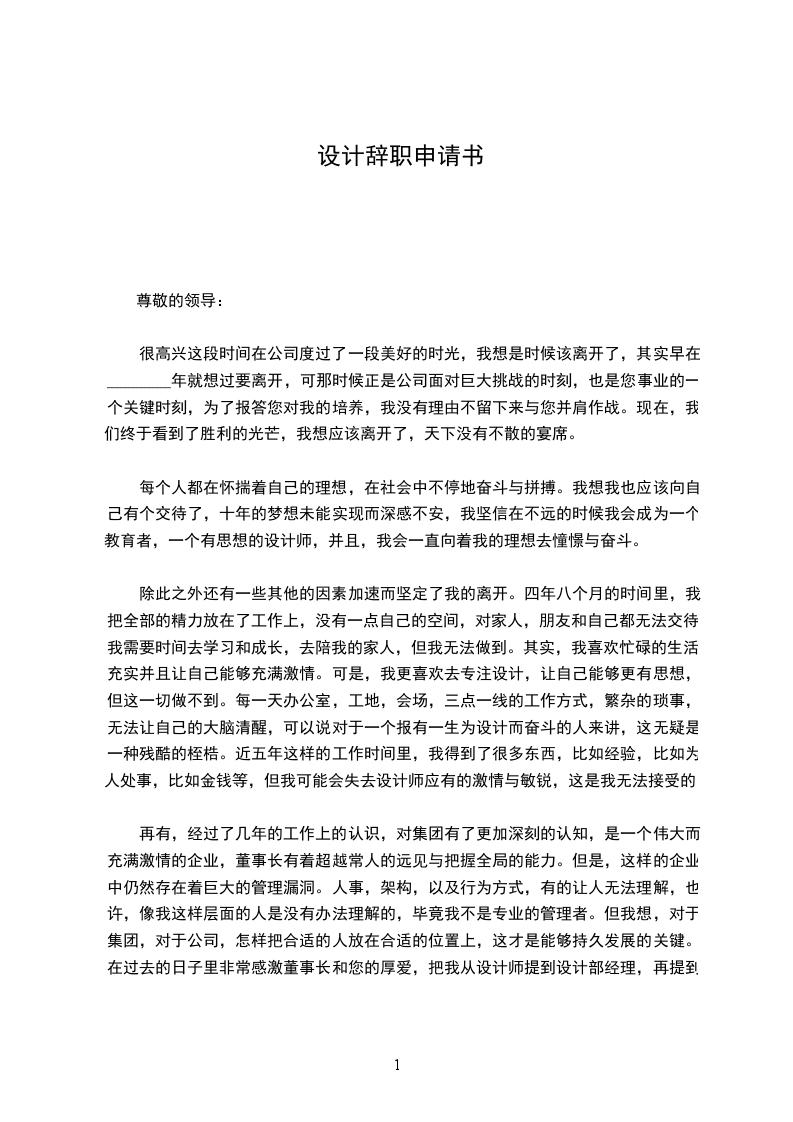再有,经过了几年的工作上的认识,对集团有了更加深刻的认知,是一个伟大而充满激情的企业,董事长有着超越常人的远见与把握全局的能力。但是,这样的企业中仍然存在着巨大的管理漏洞。人事,架构,以及行为方式,有的让人无法理解,也许,像我这样层面的人是没有办法理解的,毕竟我不是专业的管理者。但我想,对于集团,对于公司,怎样把合适的人放在合适的位置上,这才是能够持久发展的关键。在过去的日子里非常感激董事长和您的厚爱,把我从设计师提到设计部经理,再提到副总的位置。除了感激对我的信任之外,我想说我并不适合这样的工作,这样只会使我更加地疲于奔命,而并非发挥我应有的作用。