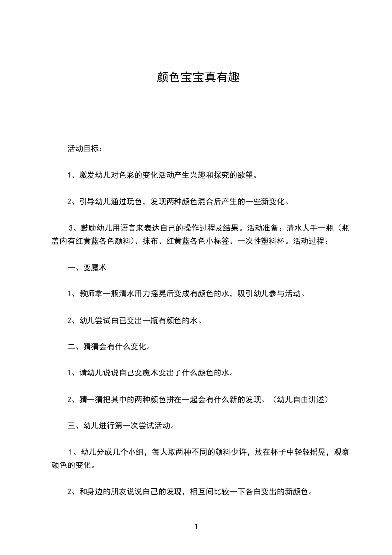 1、激发幼儿对色彩的变化活动产生兴趣和探究的欲望。