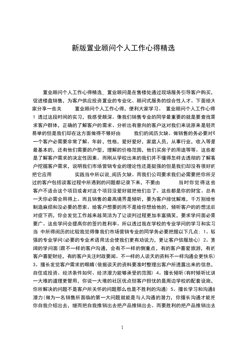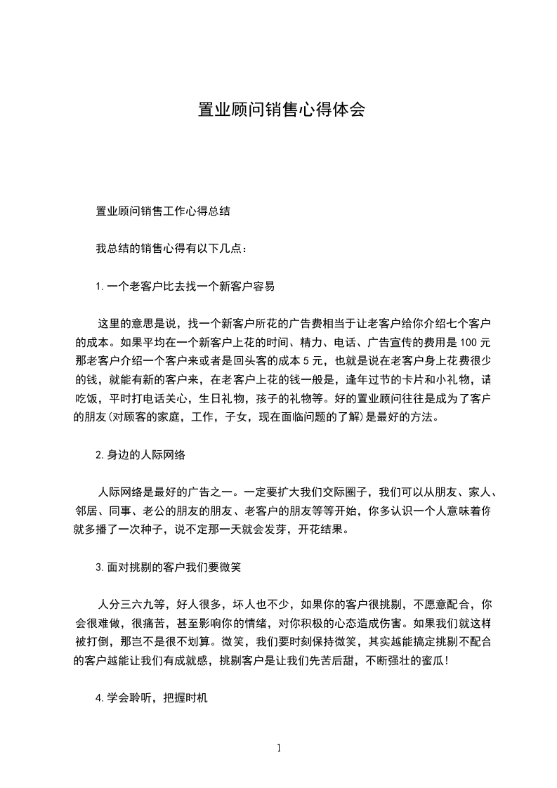 置业顾问个人工作心得精选_ 置业顾问是在售楼处通过现场服务引导客户购买,促进楼盘销售,为客户供应投资置业的专业化、顾问式服务的综合性人才。下面给大家分享一些关 置业顾问个人工作心得,便利大家学习。 置业顾问个人工作心得1 透过这段时间的实习,我感受颇深。像我们销售专业的同学最重要的就是要查找需求客户群体,正确的了解客户的需求、分析出有意向的客户这对我们来说原来是轻而易举的但是我们却在这方面做得不够好由 我们的阅历欠缺。做销售的务必要对每一个客户必需要非常了解。年龄,性格,爱好爱好,家庭人员,从事行业,收入等是最基本的,还有他们需要的户型,理解的价格范围,他们买房子的用途等等。这些都是了解客户需求的决定性因素。而刚从学校出来的我们并不懂得怎样去透彻的了解客户挖掘客户需求,说明我们市场营销专业的理论性还是挺强的但是我们却没有很好的把它应用 实践当中所以说_阅历欠缺。而我们公司要求我们必需要把你所见过的客户包括谈客过程中所遇到的问题都记录下来,不要由 当时你觉得这些客户不适合这个项目或者对这个项目没爱好就把他们忘了。这些都是你的财宝。总有一天你必需会用得上。而且销售的最高境界是倾听,要为客户排忧解难,千万别给他制造麻烦和没必要的思索。给客户想要的而不是给你想给他的,倾听客户的的想法后对症下药,你会发觉工作越来越简洁为了让谈判过程更加丰富搞笑,要求学问面必需要广。这些学问会提高你的签约胜利率。所以透过我在学校的专业学问的学习和实习当 中所得阅历的比较我觉得像我们市场营销专业的同学务必要把握以下几点; 1。较强的专业学问(必要的专业术语用法会使我们更有劝说力,更让客户信服放心) 2。宽阔的学问面(跟不一样的客户沟通,会有不一样的侧重点,有的客户喜爱旅游,有的客户喜爱财经,有的客户关注时政要闻。不一样的人谈天的资料不一样沟通会更快乐) 3。擅长发觉客户需求的眼睛(依据谈天的资料要准时整理出客户所透露出来的信息,自住或投资、经济条件如何、经济潜力能够承受的范围) 4。擅长倾听(有时倾听比讲一大堆的道理更管用,你说一大堆的社区优点但客户担忧的是周边学校的配套设施,你所解决的问题不是客户所关怀的问题那么也是不胜利的沟通) 5。擅长学习和沟通的潜力(做为一名销售所面临的第一大问题就能是与人沟通的潜力,你擅长沟通才能把你自我介绍出去,继而把自我推销出去把产品推销出去。而要胜利的把产品推销出去你务必学习产品的构成、作用、以及用法的效果,这也是学习的一个方面) 6。要永久懂得实践是检验真理的唯一标准(在没接触一件事情之前,永久不要下结论。比如打电话挺简洁的一件事情,但要胜利的打破购房者对你的戒心以及提起购房者对项目的爱好到过来项目具体了解真的很不简单。所以永久也不要小看任何一件事) 置业顾问个人工作心得2 _已逝,_已初,又是一年年关将至。在辞旧迎新的这个契机里,_年对 宁夏,对 楼市,对 _房地产开发有限公司,还有对 我,都是布满盼望的一年。我深知个人的进展离不开公司的进展,而热爱则是做好每件工作所不行缺的。所以,在这布满盼望的新一年里,我必将全力服务公司。热爱岗位,勤奋工作,严 利己,仔细专研,连续学习。用使命般的热忱面对客户,用仔细严谨的看法面对我的职业,为客户制造感动,为公司制造利润。 自进入_公司已逾四年,入职以来,从半知半解到现在对销售流程有肯定的认知,背后其实少不了下功夫,也用了不少时间,当然更少不了同事的关心。接触置业顾问的工作后才知道,工作量不大要学习的却无比的多,销售学问永久是个无敌深渊。也正由 如此,我才乐此不疲,越来越喜爱这份工作。以前长听说销售人员之间为了比拼业绩,争夺提成,常常是不择手段,阴谋迭出。幸运的是我们拥有一个成熟和谐的销售团队,同事之间既有竞争更有关心。每次分歧总能在沟通中消退,每次难题也经常在集思广益中化解。正由 有这样一群同事,我才能在销售部门快速提升自己。俗话说:近朱者赤近墨者黑。由 有_这样深厚的企业氛围和团队精神,才给了我成长所需的养分。 在日常工作中,除了诚信的看法,也要总结出切实可用的的方法来应对销售工作,对此我要做到以下几点: