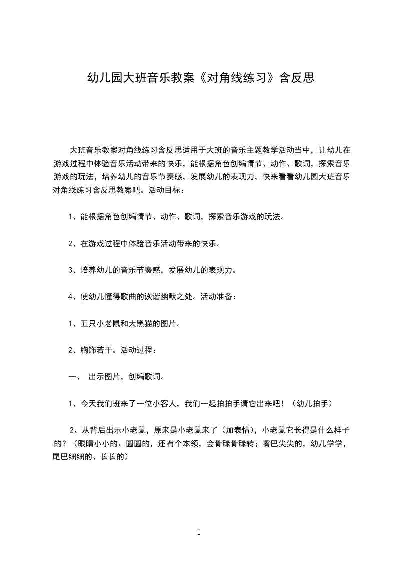 大班音乐教案对角线练习含反思适用于大班的音乐主题教学活动当中,让幼儿在游戏过程中体验音乐活动带来的快乐,能根据角色创编情节、动作、歌词,探索音乐游戏的玩法,培养幼儿的音乐节奏感,发展幼儿的表现力,快来看看幼儿园大班音乐对角线练习含反思教案吧。活动目标: