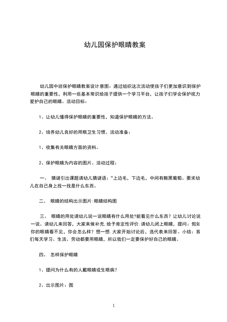 1、让幼儿懂得保护眼睛的重要性,知道保护眼睛的方法。