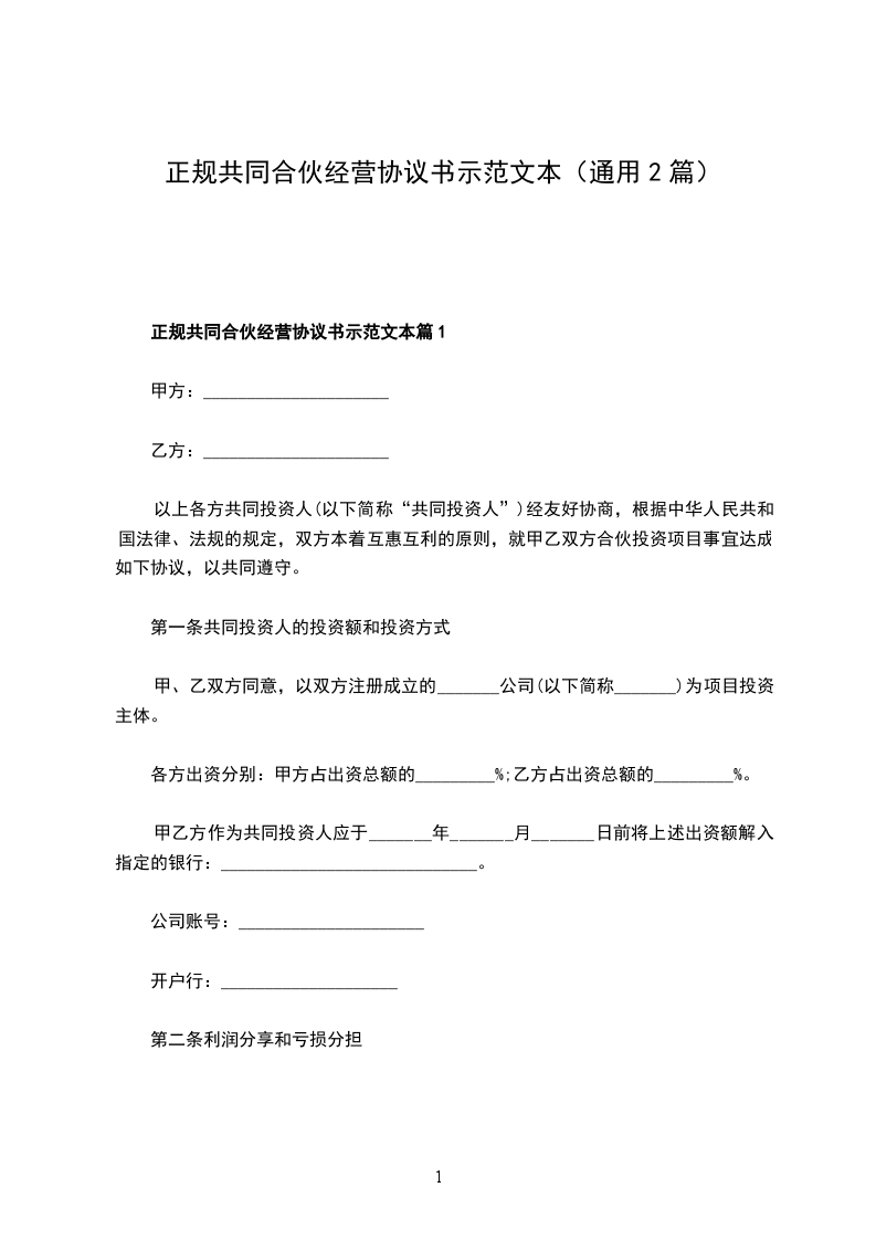 2、本协议一式两份,合伙人各执一份。