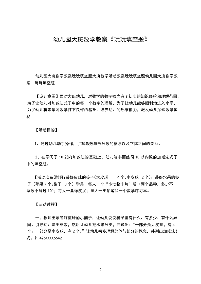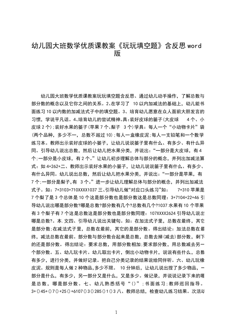 幼儿园大班数学教案玩玩填空题大班数学活动教案玩玩填空题幼儿园大班数学教案:玩玩填空题
