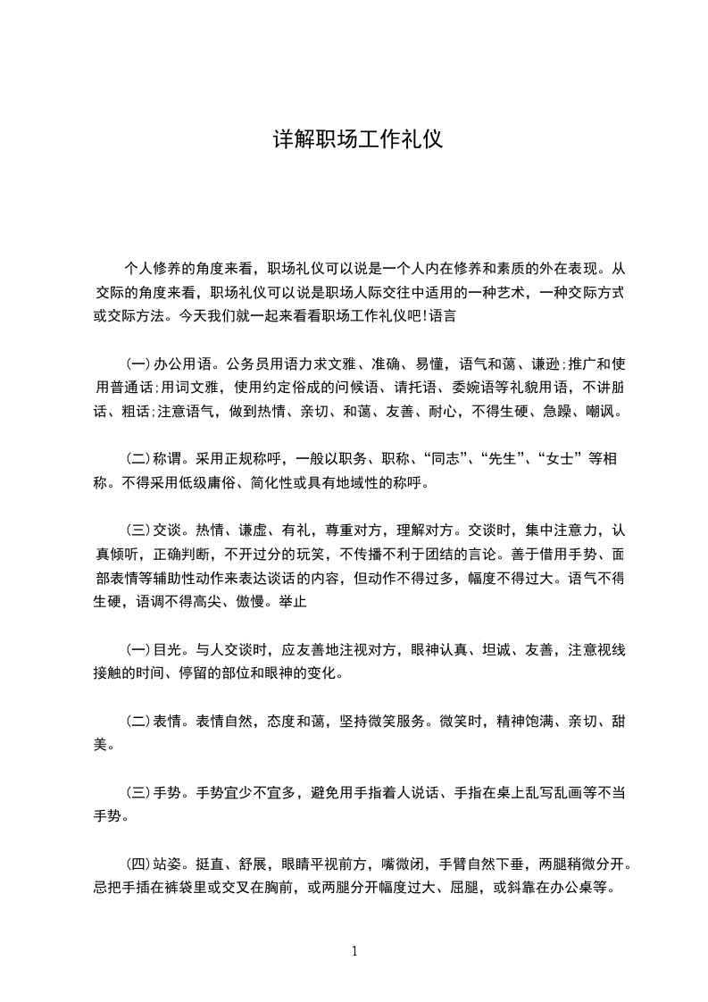 个人修养的角度来看,职场礼仪可以说是一个人内在修养和素质的外在表现。从交际的角度来看,职场礼仪可以说是职场人际交往中适用的一种艺术,一种交际方式或交际方法。今天我们就一起来看看职场工作礼仪吧!语言