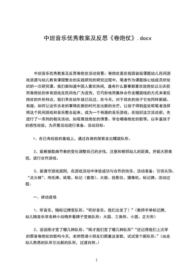 幼儿园中班音乐优秀教案卷炮仗含反思中班音乐优秀教案卷炮仗含反思这是优秀的中班音乐教案文章,希望可以对您的学习工作中带来帮助!活动目标