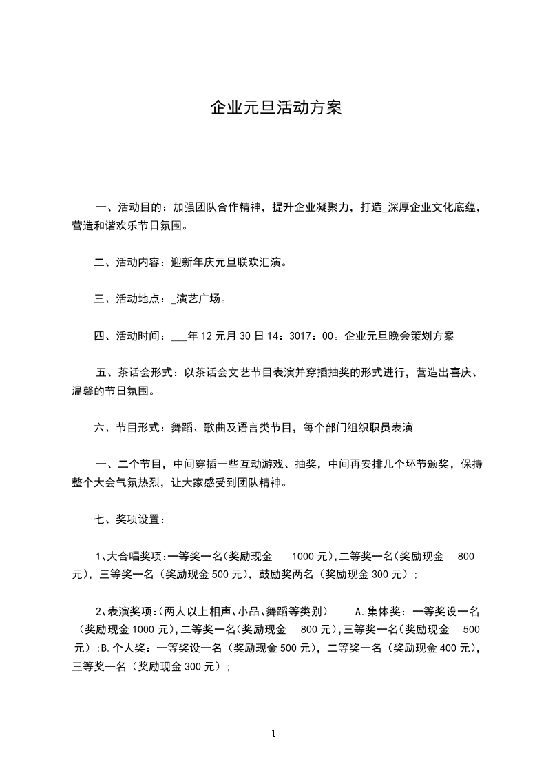 四、活动时间:___年12元月30日14:3017:00。企业元旦晚会策划方案