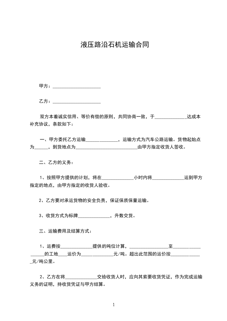 液压路沿石机运输合同