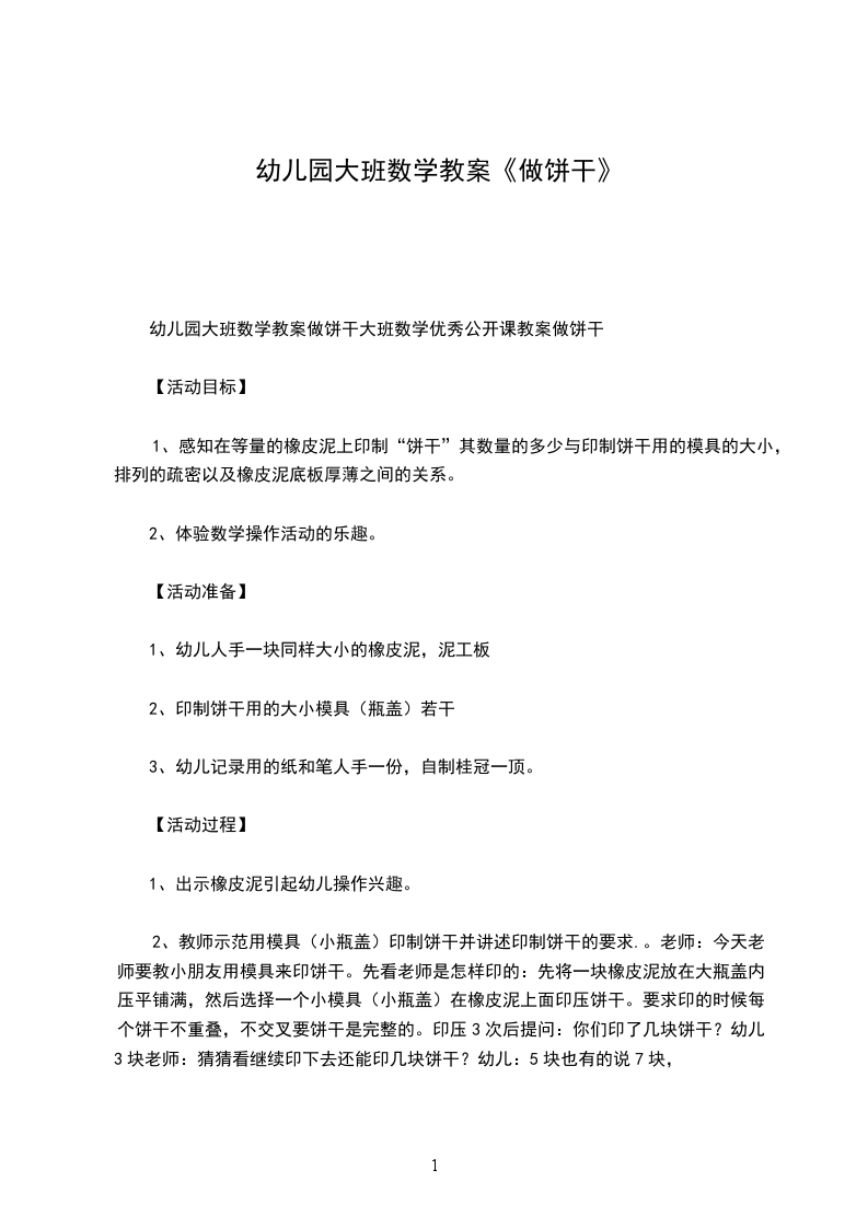 幼儿园大班数学教案做饼干大班数学优秀公开课教案做饼干