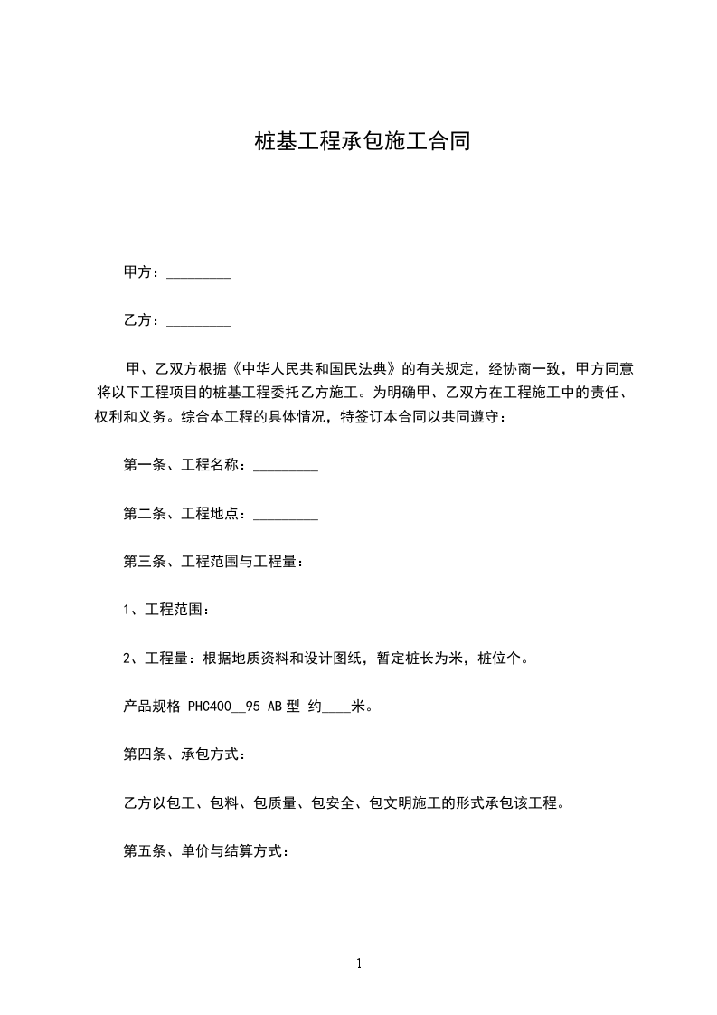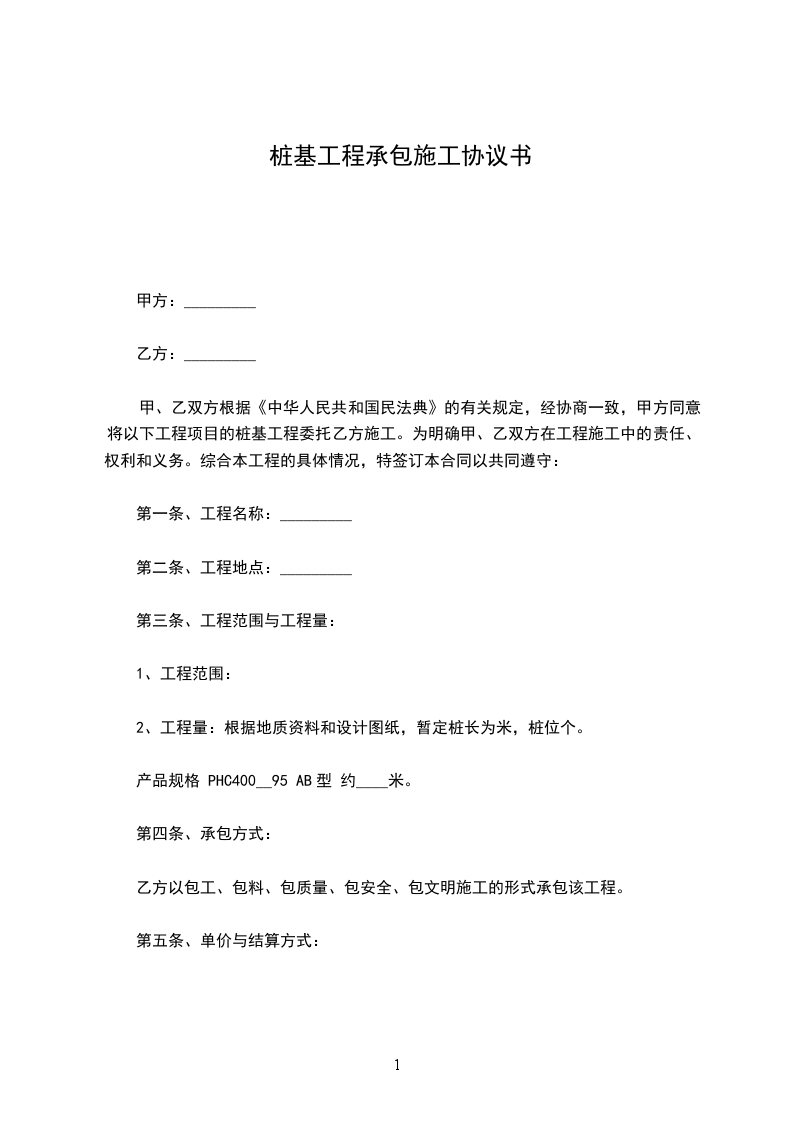 甲方:乙方:郑XX根据?于?.?建筑安装工程承包合同条例?及有关规定,为了共同完成建设项目,甲、乙双方本着平等互利.互惠的原则,决定将本工程的预应力管桩锤击桩基施工任务委托乙方承担,为了更好地完成这项工程的施工任务,结合本工程的具体情况,经甲乙双方友好协商,特制定以下条款,以便甲乙双方共同遵守。