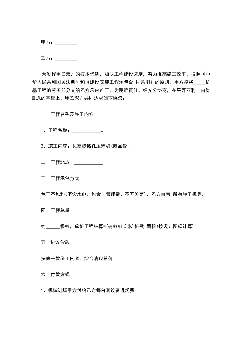 3、施工前甲方应提供桩位总平面图、桩位图、地质资料各一份以及施工中的工程联系单。