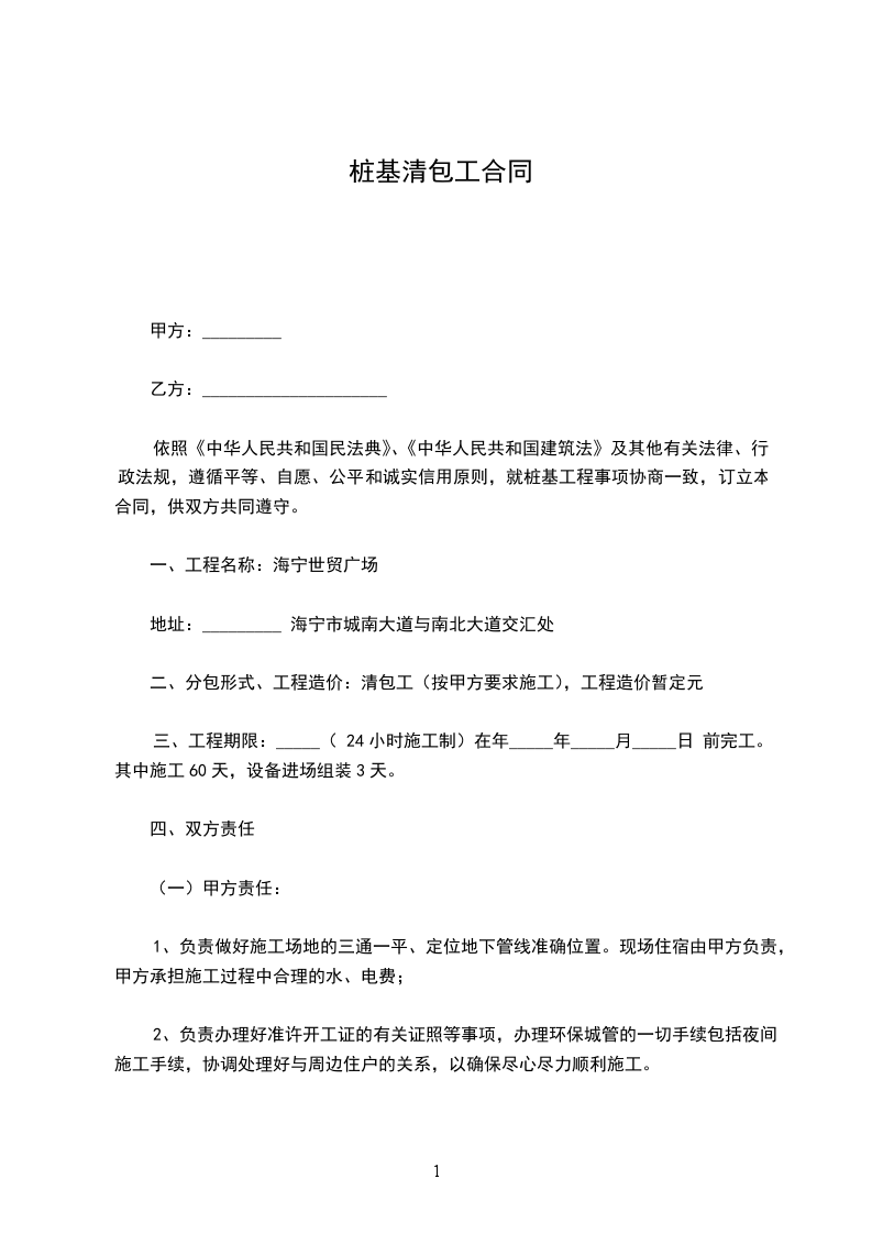 5、施工过程中乙方造成,桩位偏差质量按国家规范规定验收不符合由乙方承担责任。