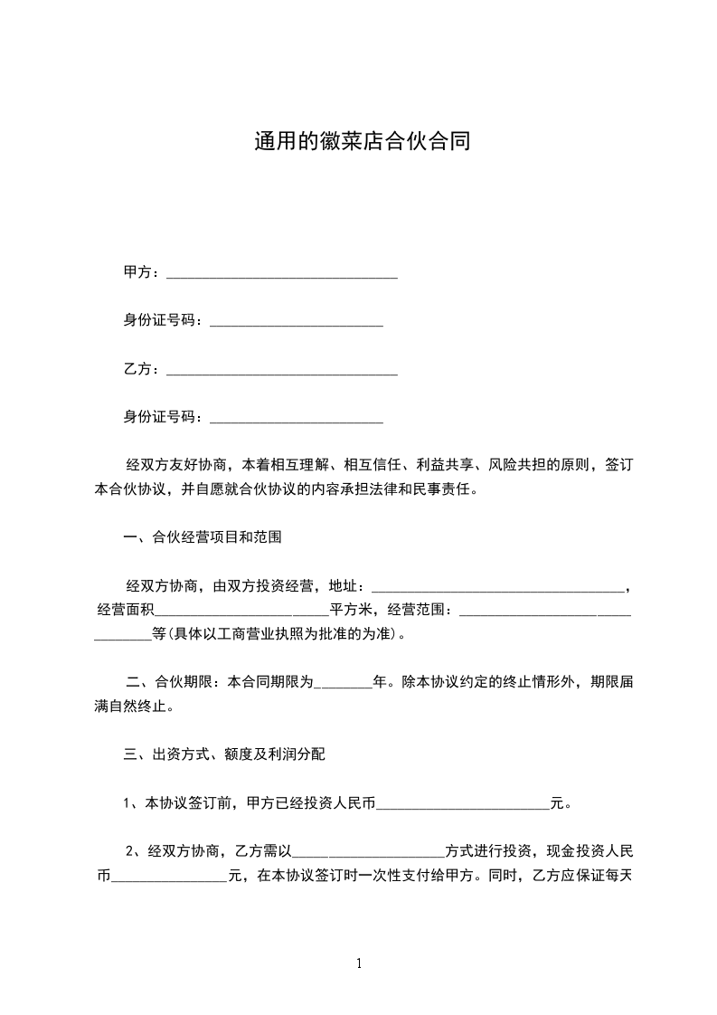 第一条:合伙宗旨:________________________________________。