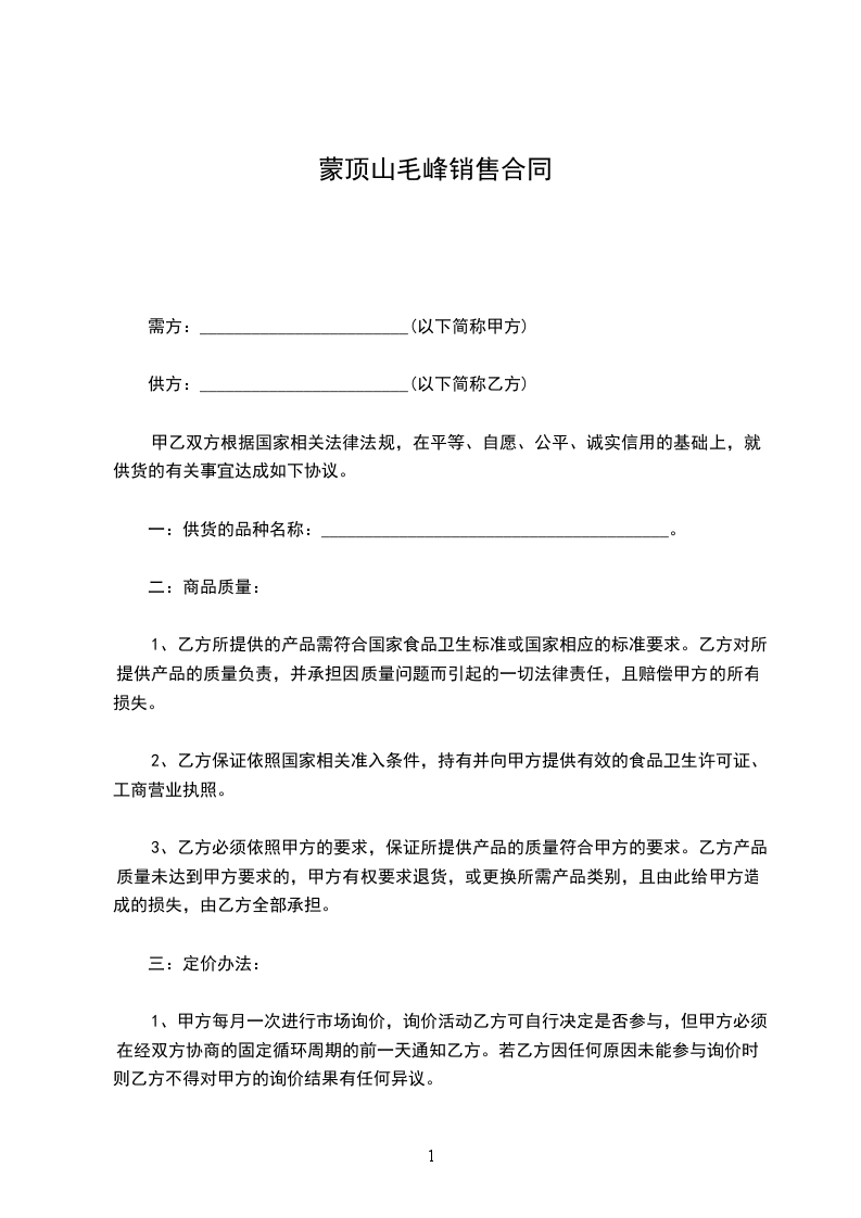 需方:________________________(以下简称甲方)