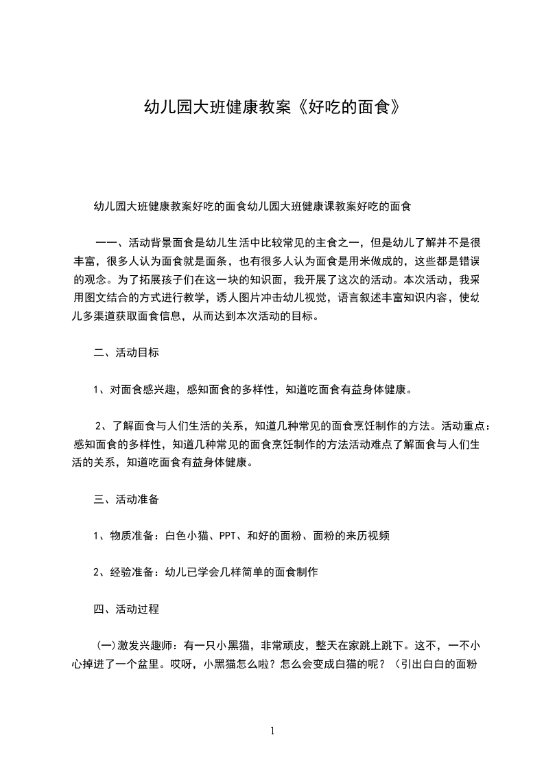 幼儿园大班健康教案好吃的面食幼儿园大班健康课教案好吃的面食