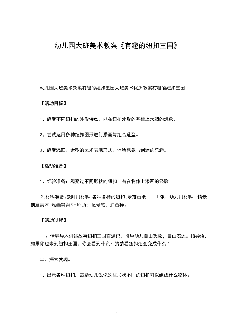 幼儿园大班美术教案有趣的纽扣王国大班美术优质教案有趣的纽扣王国