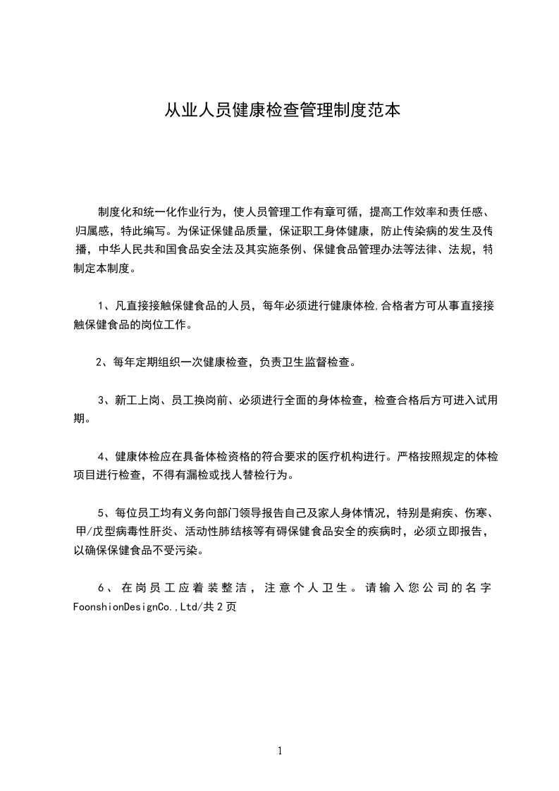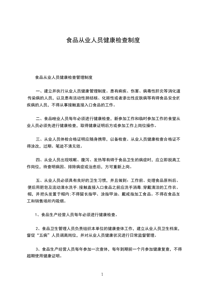 二、食品唑业人员每年必须进行健康检查,新参加工作和临时参加工作的食堂从业人员必须先进行健康检查,取得健康证明后方或参加工作上岗位操作。