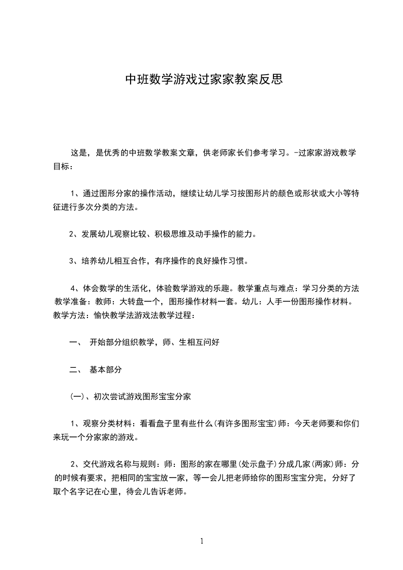 这是,是优秀的中班数学教案文章,供老师家长们参考学习。-过家家游戏教学目标: