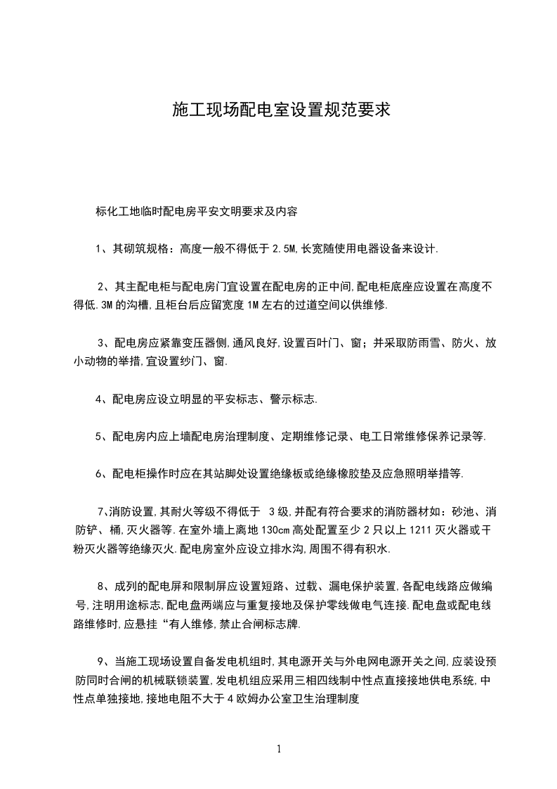 标化工地临时配电房平安文明要求及内容