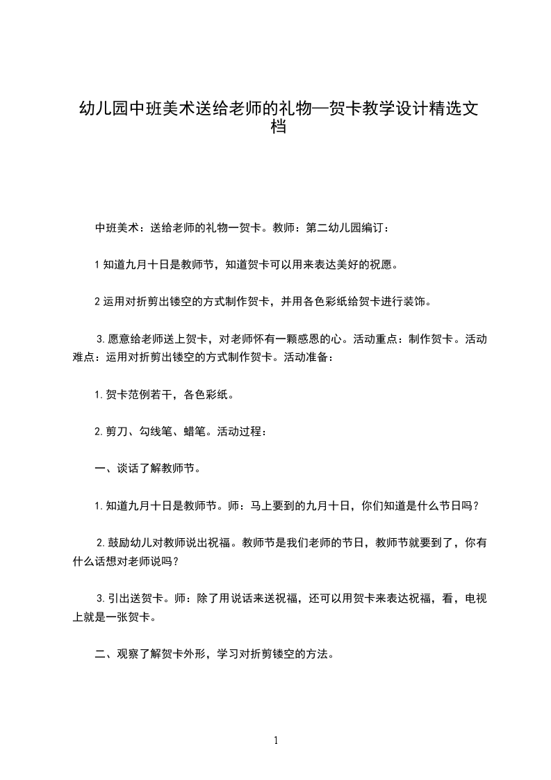 一、谈话了解教师节.1.知道九月十日是教师节.原创教学设计E_cellentTeachngDesgn师:马上要到的九月十日,你们知道是什么节日吗?2.鼓励幼儿对教师说出祝福.教师节是我们老师的节日,教师节就要到了,你有什么话想对老师说吗?3.引出送贺卡.师:除了用说话来送祝福,还可以用贺卡来表达祝福,看,电视上就是一张贺卡.