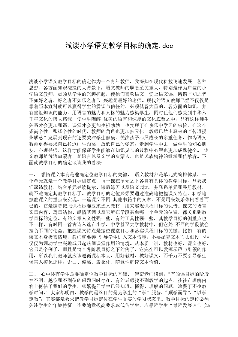 浅谈小学文言文教学:初中文言文的教案大全文言文即古文,是中国古代的书面语体,是中华民族优秀的文化遗产,是古代文明传承的媒介。安排文言文的目的是让学生初步感受古代的语言,了解祖国悠久灿烂的文化,进一步培育热爱祖国语言文字的思想感情,并为初中学习文言文打下基础。学习并诵读文言文,能提高语言的感悟能力、表达能力、概括能力和逻辑思维能力,文中蕴含的道理能给人思想上的启迪。初学文言文,很多学生感到困难,一是难读,二是难懂。有些学生不大喜欢这些“之乎者也”的文章,觉得枯燥乏味。作为教师,我们应该怎样做才能让学生喜欢文言文,会学文言文?怎样才能让文言文在学生的语文素养中占一席之地呢?我认为教师在教学文言文时应该做到下面几点。