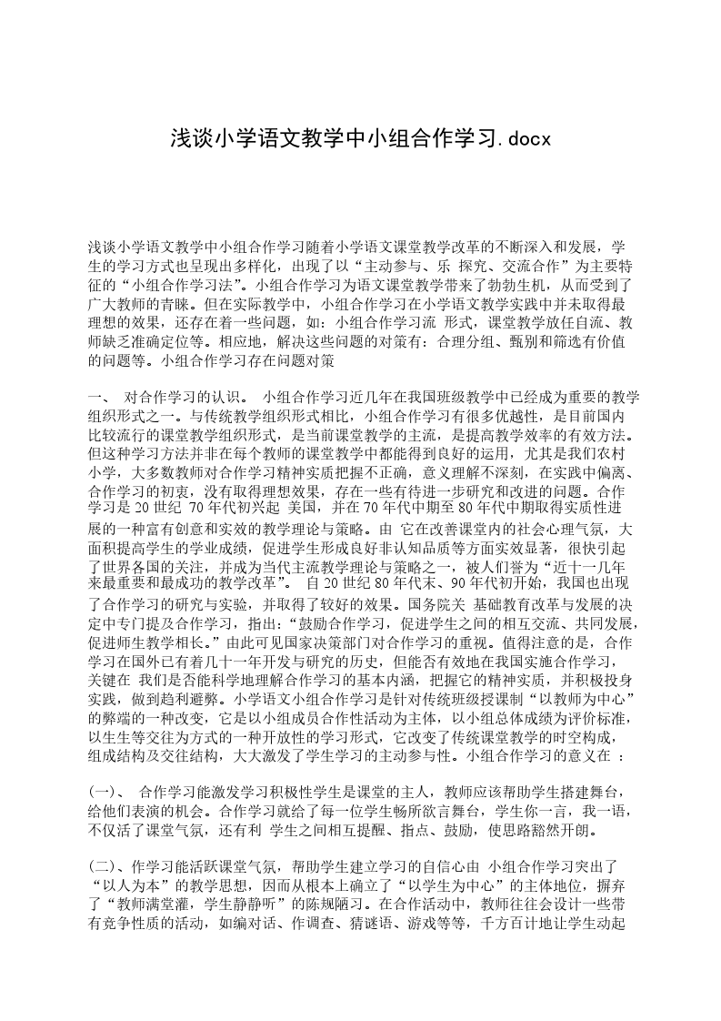 四、 初步尝试赏析文言文对于初学者而言,文言的赏析要求不应太高,只要能理解文章所讲内容,体会文章所表达的中心即可。小学课本所编的这些故事大多是学生熟悉的,是学生已具备的认知基础,当他们进入文言文这一新的学习领域时,以一种似曾相识的感觉,降低了陌生感,消除了其畏难情绪。学生已学习了几十首古诗词,熟读了许多名言警句,有了一定的语言积累,并且这些内容的学习方法都与文言文的学习大相径庭。虽然学生初学文言文虽然有一定的语言障碍,在词语、句式方面差别较大,尤其是能否正确地断句、流利地朗读是初学文言文时最大的困难,但不是从零开始,也绝不像学习外国语那样毫无根基。由此可见,小学生赏析浅显易懂的文言文并不难。如学奕一文,要把指导学生朗读和背诵作为教学的重点,从理解课文方面看,只要学生能弄明白“两个人学习结果不同,并不是因为在智力上有多大差别。”能体会到“学习必须专心致志,不可三心二意”的道理即可。总之,文言文的教学是语文教学中的一个特殊的内容,与现代阅读教学有着密切的联系,同时又有着自身独特的特点。在教学中,我们应结合具体的教学内容和学生实际,采用灵活多变的教学模式,选取恰当的教学策略,创设轻松愉悦的教学情境,教给学生学习方法,使其乐学、会学。同时在教学中,我们应侧重于欣赏,体味文中之情,想象文中之景,感悟文中之道,感受文中之“雅”,进行审美教育;侧重于诵读,培养学生的语感,让学生享受祖国古代汉语的神韵:侧重于感悟,能用自己的话对整体内容经行正确、清楚、连贯的表达,能由故事内容感悟其中蕴含的深刻哲理,能结合实际谈自己的体验和感受。如果教师能做好以上几点,那么学生对文言文就乐学、会学,从而全面地提高学生的语文素养。