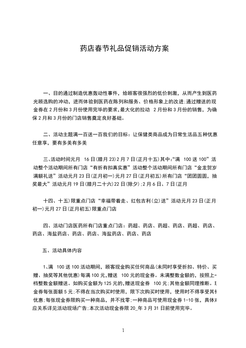 一、目的通过制造优惠轰动性事件,给顾客很强烈的低价刺激,从而产生到医药光顾选购的冲动,进而体验到医药在陈列和服务、价格形象上的改进;通过赠送的现金券在2月份和3月份使用完毕的要求,最大化的拉动2月份和3月份的销售,为确保2月和3月份的门店销售奠定良好基础。