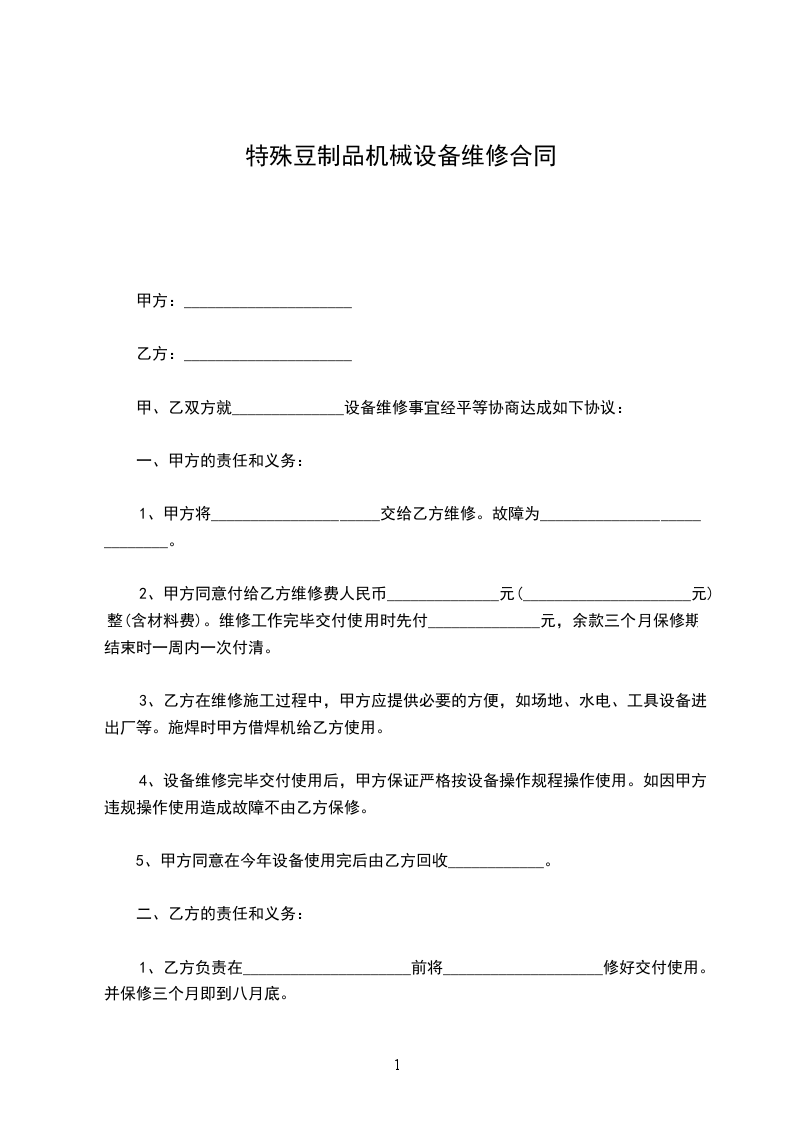 甲、乙双方就______________设备维修事宜经平等协商达成如下协议: