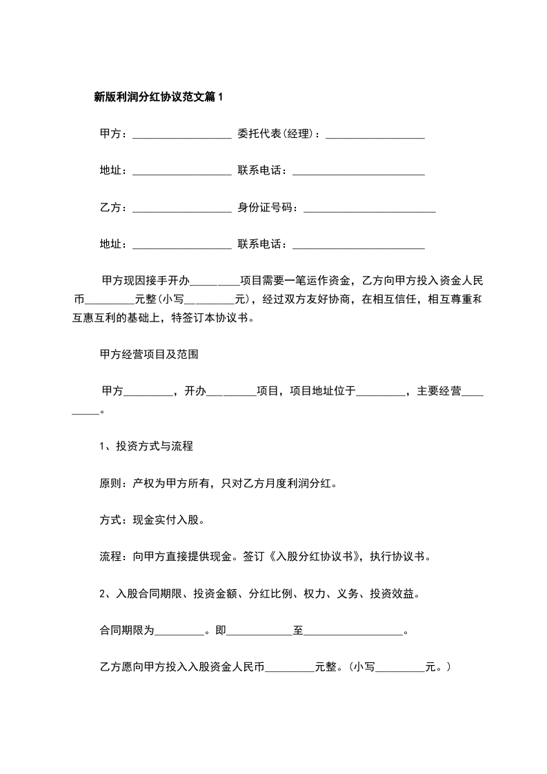 新版利润分红协议篇1
