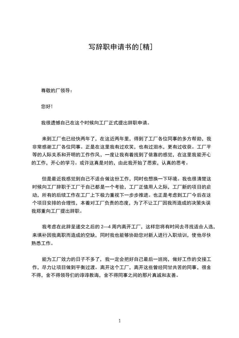 在公司工作的这段时间里,我很荣幸得到了各位领导和同事们的照顾,工作上,我学到了许多宝贵的经验和实践技能;在生活上,得到各级领导与同事们的关照与帮助;思想上,得到领导与同事们的指导与帮助,有了更成熟与深刻的人生观。工作的这段时间,将是我最珍贵的一笔财富。随着时间推移,越来越深感自身专业知识的薄弱,所以想自己有必要再去学点有关本专业的知识,请公司领导给予支持和理解,准予我的辞职申请!