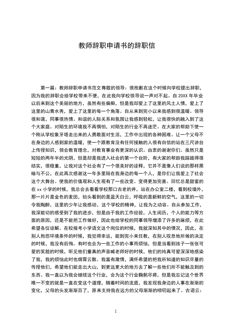 自________年____月分到________学校以来,我一直受到了学校领导和老师各方面的帮助,对此我很感恩不尽的。刚大学毕业时,我由一名学生成了一位光荣的人民教师,对教师这职业我是既熟悉又陌生。记得在我来校的当天,就受到了学校领导和同事们的欢迎,心里感到非常的温暖;教学工作上,老师们无私的将许多教学经验传授给我。从备课到讲解,从和学生相处到批改作业,从语言运用到为人处世等等,让我学了不少东西,但时间在流逝,人也在不停的变化,在新徽这两年来,我的思想态度都在不停的变化,从最开始对学生的耐心,好奇,探究,到现在对学生无所谓,我觉得自己已经不是一位负责的教师了。最初的心已经偏离了核心,那再做下去意义就不大了。经过多日的深思熟虑,我决定离开教师这一行业,离开新徽。