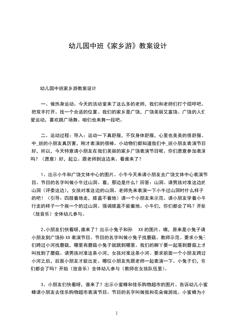 幼儿园中班家乡游教案设计