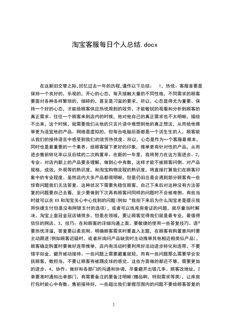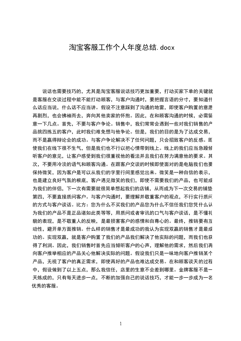 4、有效的完本钱职工作旺旺是我们与顾客沟通的工具之一,在旺旺上与顾客沟通时我们要留意回复速度,只有准时回复才能让顾客第一时间感受到我们的热忱,为此我们设置了各类快捷短语。在保证回复速度的根底上,我们也要留意沟通技巧,热忱的态度往往是打算成功的一半。通过联络处理顾客的退换货也是我们的职责之一,在联络时我们也要留意最根本的礼仪。通常我们所处理的工作都是主动与顾客联络,拨打时要留意时间不宜太早或太晚,也不相宜在午休时间去电顾客;其次我们要留意沟通技巧,通话之前我们要理解去电的目的,在通话途中要吐词清楚,留意倾听顾客的要求,不要随意打断顾客,同时要留意掌握通话时长,避开占用太多的工作时间;打时的肯定要态度友善,语调温顺,讲究礼貌,从而有利双方的沟通。通话完毕时应礼貌的回复顾客再挂断。对顾客的一些问题我们要持一个专业的态度去对待,在保持专业水准的根底上我们也要让顾客看到我们恳切的态度,假设凭自己的专业产品学问还是不能解决问题,这时我们就要从顾客的回复中洞悉顾客的心理,努力快速解决顾客的问题,并将售后本钱降到最低。假设处理得当,久而久之公司的信誉评价等都会有所提升,这也是表达我们售后价值的所在。在过去的一年中我收获了许多,但是我知道自己还有缺乏之处。给我印象较深的是一次小组式的模拟培训演练,通过模拟顾客与客服沟通买卖的场景,将产品推销给顾客。假设客服熟知了自己产品,理解一些穿衣搭配学问,在分析一下顾客的购置心理,然后找出有效的推销手段,这样成交的时机就大的多。公司的培训也让我看到了自身的缺乏,在这以后,我也是在努力改进,平常工作闲暇之余,我会多关注店铺新款和店铺各类活动,在每次活动前我也会花时间去理解活动规章,做到心中有数。公司也组织过各种各样的培训,在年中闲暇之际,我申请过到售前岗位去学习,虽然学习时间不长,但也收获了许多,对他们的工作也有了大致的理解。售前虽然只需要通过旺旺与顾客打交道,但是XXX也是需要许多技巧的,让买家下单关键是客服在交谈过程中能不能打动顾客,如何让顾客买到自己想要的产品,并非一味的推销而是让顾客享受购物的过程。也使我明白金牌客服不是一天练成的,当接触了不用的岗位后我才觉察自己其实还有许多需要去学习和改进的,在以后的工作中我也期盼有更多的培训时机。