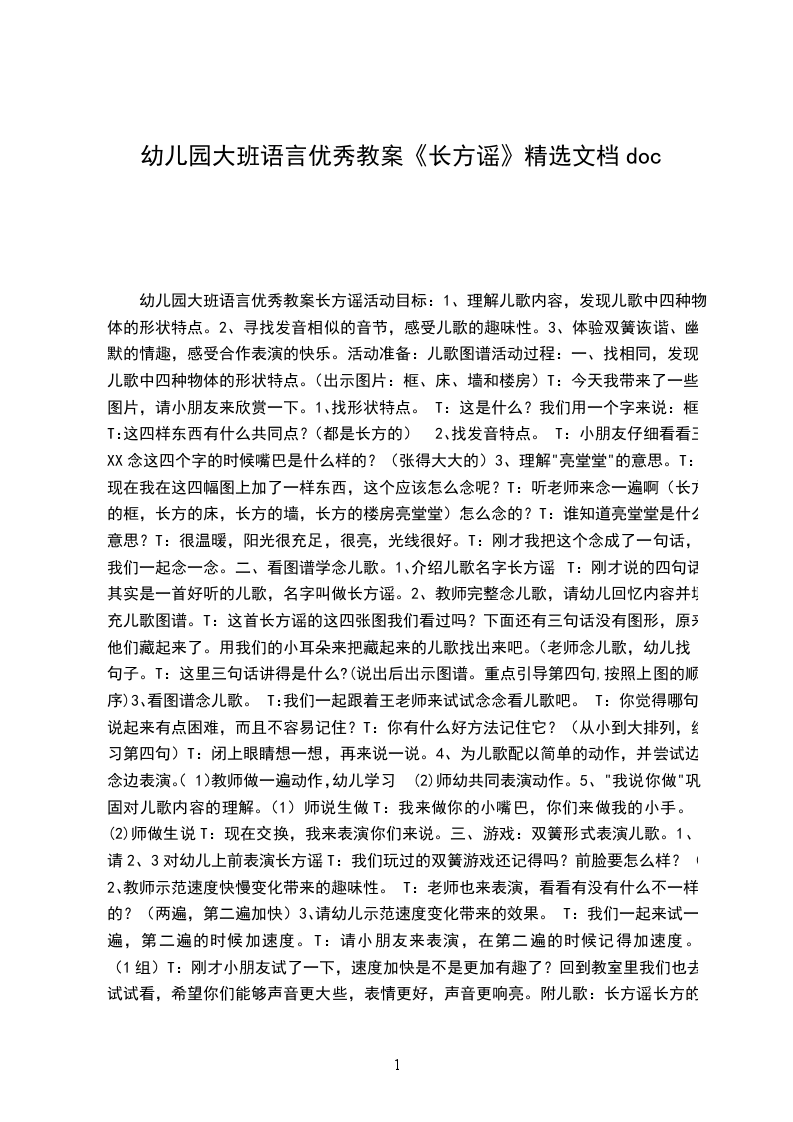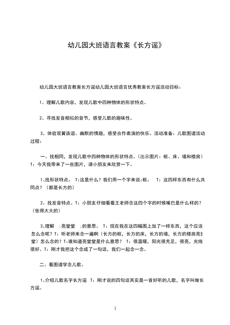 幼儿园大班语言教案长方谣幼儿园大班语言优秀教案长方谣活动目标: