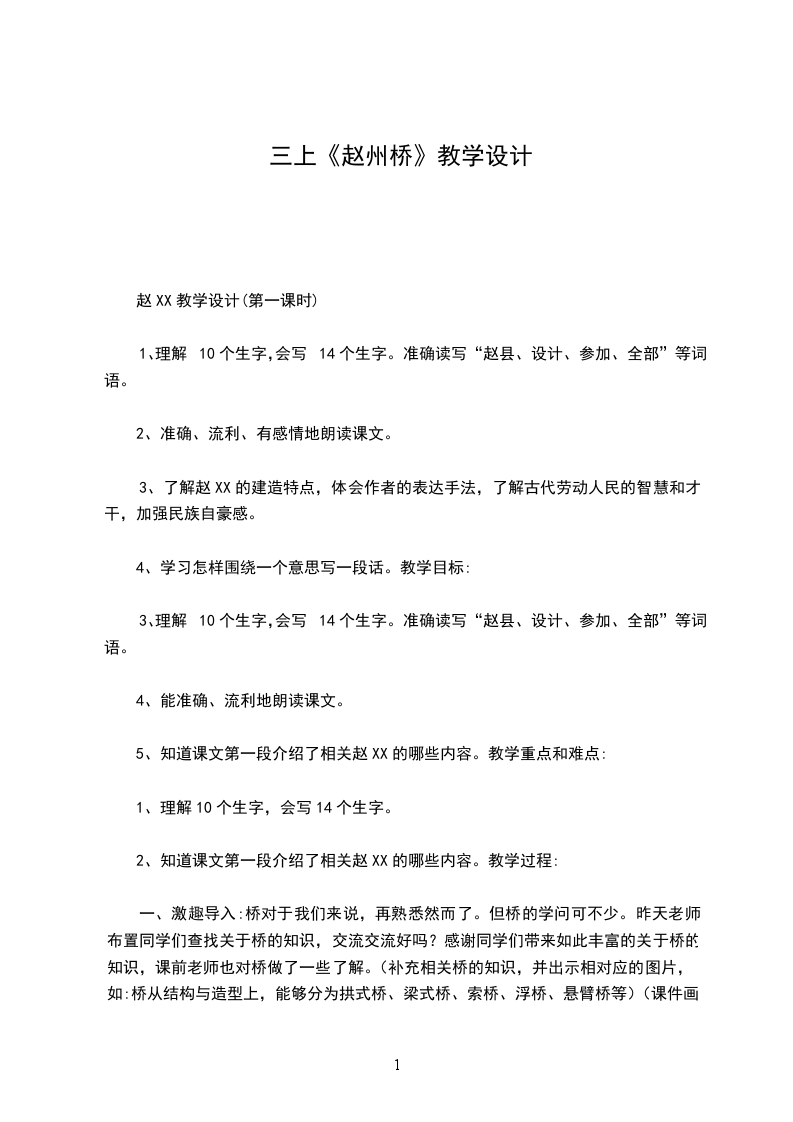 1、理解10个生字,会写14个生字。准确读写“赵县、设计、参加、全部”等词语。