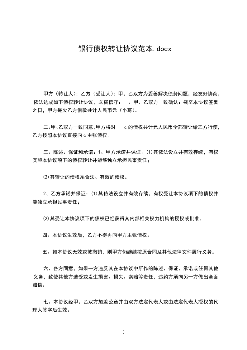 (1)其依法设立并有效存续,有权实施本协议项下的债权转让并能够独立承担民事责任;
