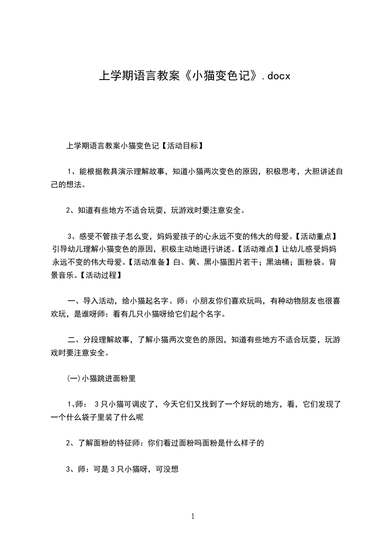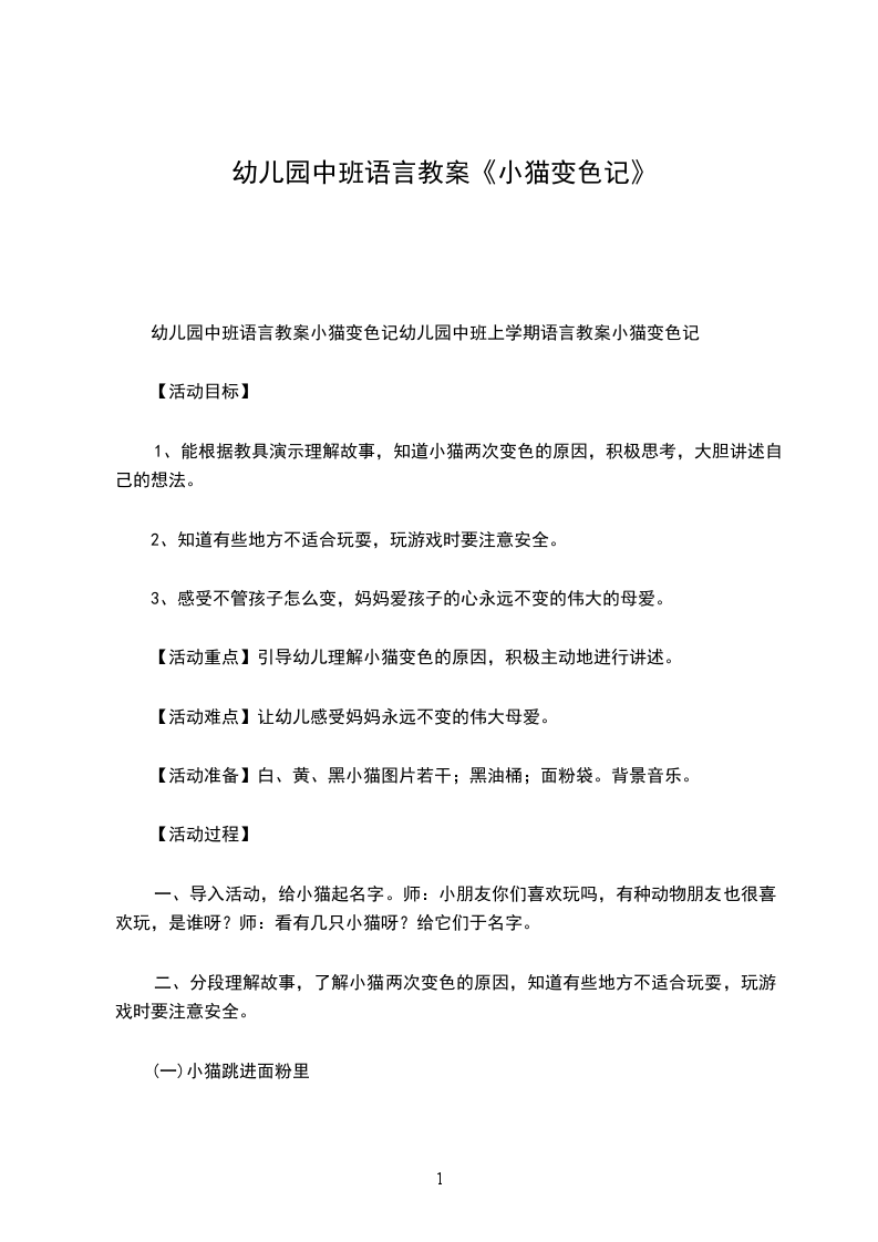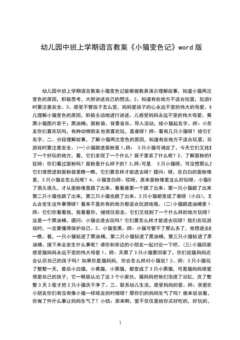 幼儿园中班语言教案小猫变色记幼儿园中班上学期语言教案小猫变色记