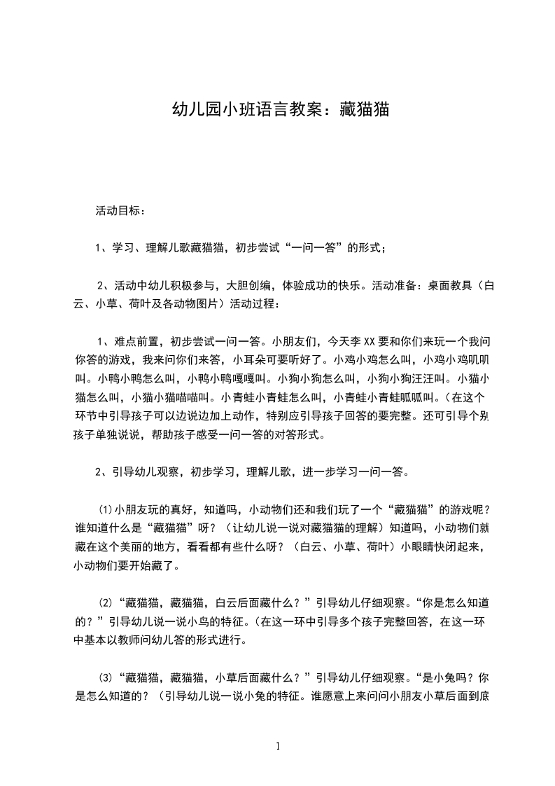 一、导入活动,给小猫起名字。师:小朋友你们喜欢玩吗,有种动物朋友也很喜欢玩,是谁呀?师:看有几只小猫呀?给它们于名字。