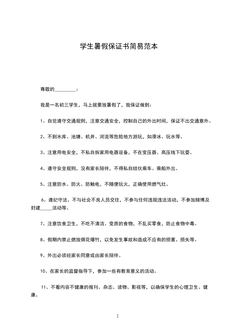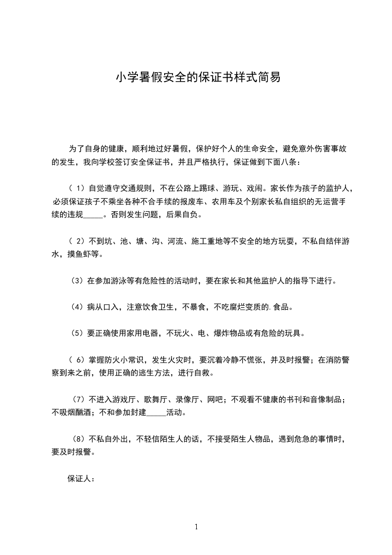 为了自身的健康,顺利地过好暑假,保护好个人的生命安全,避免意外伤害事故的发生,我向学校签订安全保证书,并且严格执行,保证做到下面八条: