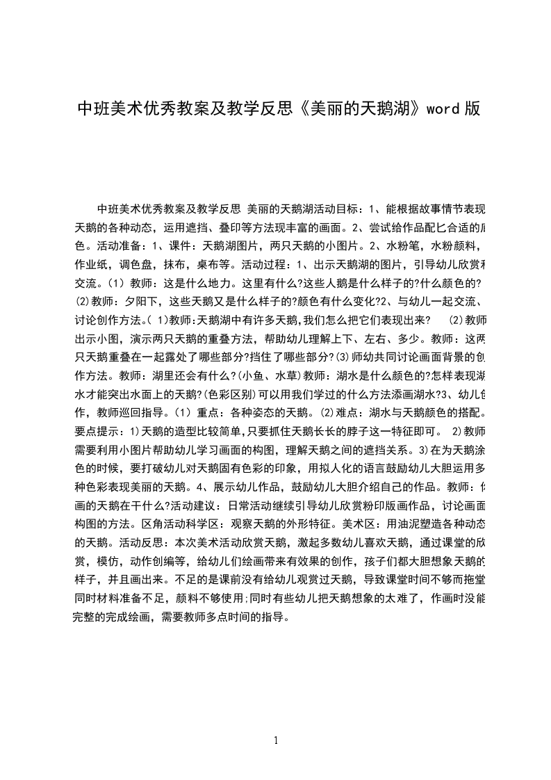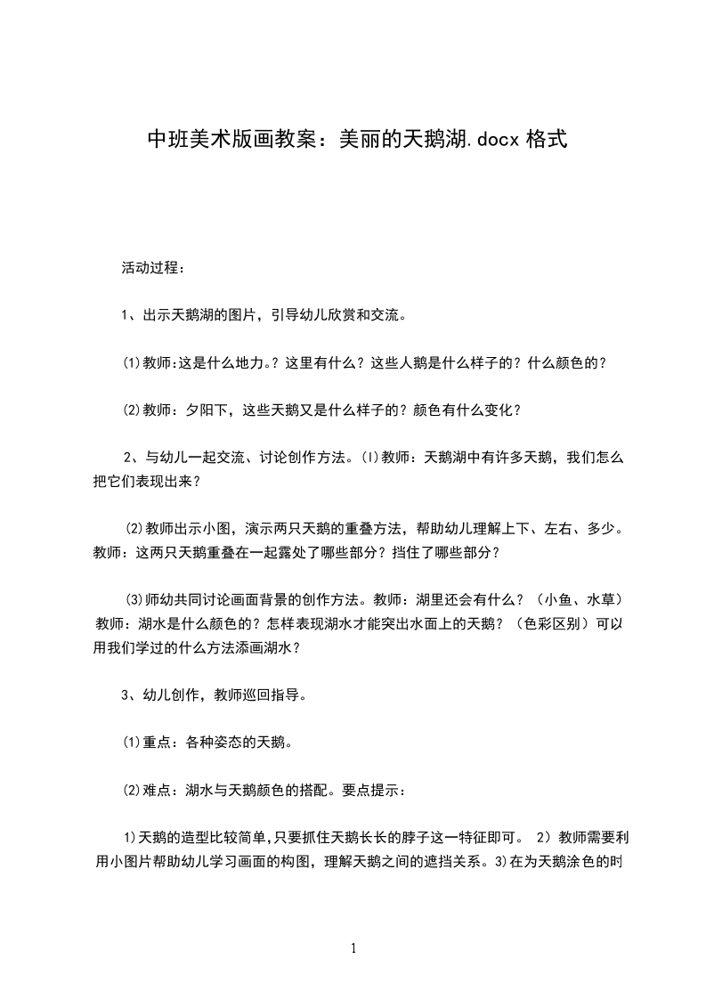 1、出示天鹅湖的图片,引导幼儿欣赏和交流。
