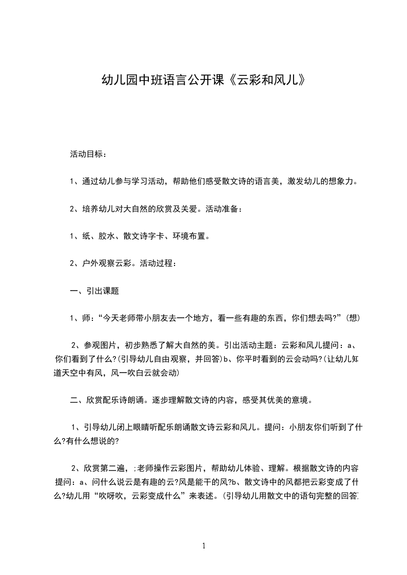1、引导幼儿欣赏散文的语言,感受散文美的意境。(重点)