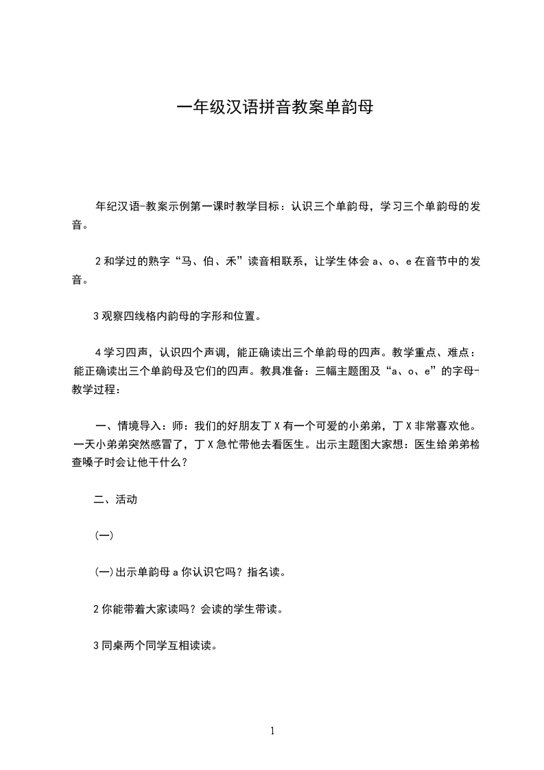 1、认读几个带调的单韵母。(抽读卡片)