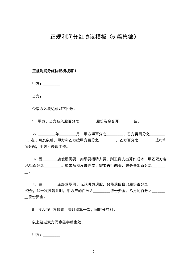 正规利润分红协议范文篇1